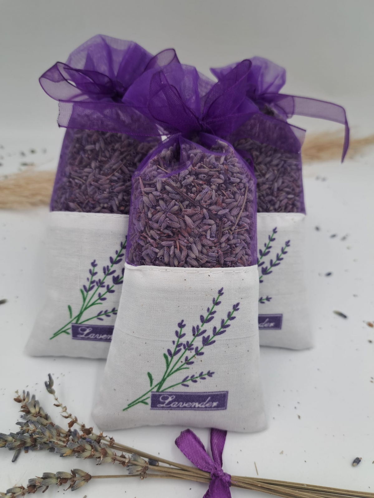Saculeti delicati plini cu lavanda naturala,perfecti pentru a adaugaun parfum relaxant in orice incapere. Aromele calmante ale Lavandei ajuta la crearea unei atmosfere linistitoare,fiind ideali pentru ai pastra in dulapuri,sertare sau langa perna pentru un somn mai linistit. Lavanda isi pastreaza aroma timp indelungat,oferind o senzatie placuta de prospetime si relaxare.Perfecti pentru un cadou simplu si rafinat.